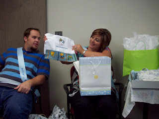 I had a wonderful shower at work on Friday. Good food and lots of good gifts! I was so stuffed, but I just kept snacking. I work with wonderful people, I don't know what I'd do without them! Thanks BARC co-workers, ya'll did a wonderful job!! We could never thank you enough!